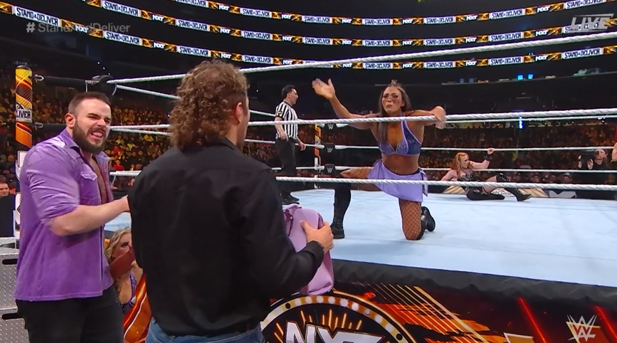 Maybe it’s just my time away but this doesn’t feel even remotely close to a main event on NXT. Last time I saw a show Breakker looked ok as a main. He reminded me of Scott Steiner, his uncle, which is a good thing. There’s a lot of posturing here. That dork Carmello slips on the ropes and repeats the spot, which is just him bouncing off Bron anyway. So, you did the cardinal sin for nothing? This is what happens when you plan matches so intricately with no room for anything to go wrong. After a spot heavy show, they opt to slow it down. I commend that but if someone called this “boring”, I wouldn’t argue with them. They could make more of Trick Williams ringside interference. He literally does it once, gets caught, and booted to the back. The crowd clearly want Carmelo to win. He’s more creative than Bron, albeit less consistent.