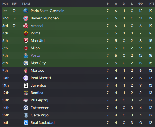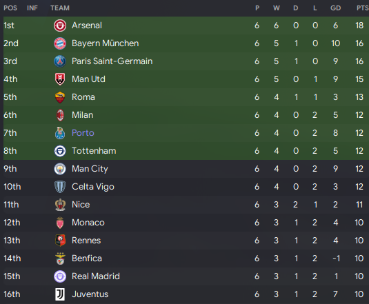 A result that puts us well in the driving seat for the Portuguese title. We are COOKING in January. We’ve been fantastic. Back in the CL, we just about squeak past Salzburg 2-1 to secure our place in the R16. 6 wins from 8 games and 18 points is above what I was expecting from this campaign. I believe we have significantly overachieved here. The teams who automatically qualify for R16 are PSG, Arsenal, Bayern, Roma, Milan, Porto, Man City and Monaco. Considering we whupped Monaco, I wouldn’t mind playing them but sadly it doesn’t work that way. A bunch of heavy hitters will have to play off including Real Madrid, Juventus, Benfica, Man Utd, Newcastle, Inter, Dortmund, Spurs and Barcelona. No huge teams miss out entirely, which is part of the point of this super league-esque expansionism. Unless you think Celtic and Ajax are big teams.