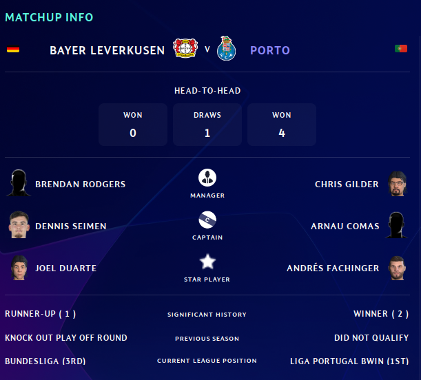 Ah, beautiful! Brendan Rodgers’ Bayer Leverkusen. Probably the easiest draw possible.