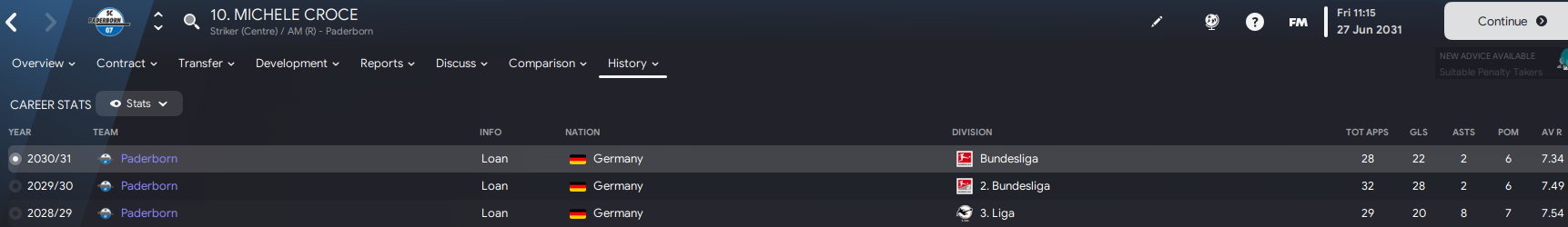 Michele Croce, legendary striker, is available. I tried to table a bid and they want £61M for him. He’s already considering moves to Bayern, Leipzig and Milan. I’m not exaggerating when I say he’s probably the best striker in the game of his age. Of course he signed for Bayern.