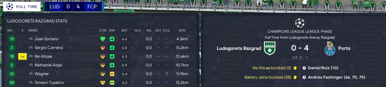 I only have three pre-season friendlies to figure out the best XI. I’ve gone with this. Zimmerman is the only player I’ve signed. I could never afford him, and he was available from Anderlecht. Great goalkeeper. Enormous potential. Alago is something of a wonderkid. He just about edges out Tanganga at centre back. Galarza is complaining of playing time but he’s ideal for DLP so in he goes. Ferreyra wasn’t first choice on the wing until I saw him play. I can’t even remember who my original choice was. The front two; there are options. Fachinger looks the best bet for goals while Aarflot is a facilitator. We also have Kelvin Yeboah as an advanced option. Miller Ribeiro is an AMC but can also play up top. Finding a place for him is tricky. He is arguably our top prospect. We also have Luciano Inverso, who scored a few in pre-season. Porto’s squad is, in general, very strong. We should contend the title. Champions League is going to be way tougher.