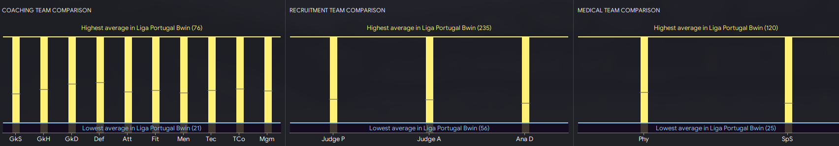 Most of pre-season is spent assessing existing players and filling out our backroom staff. No chaotic transfer window for a change. In all fairness, Porto is a big strong squad. I don’t need to throw money around here. Just move the parts into the right place. New coaches include Virgil van Dijk and Ciro Immobile. Based on the graph above, I’ve done a decent job of it.