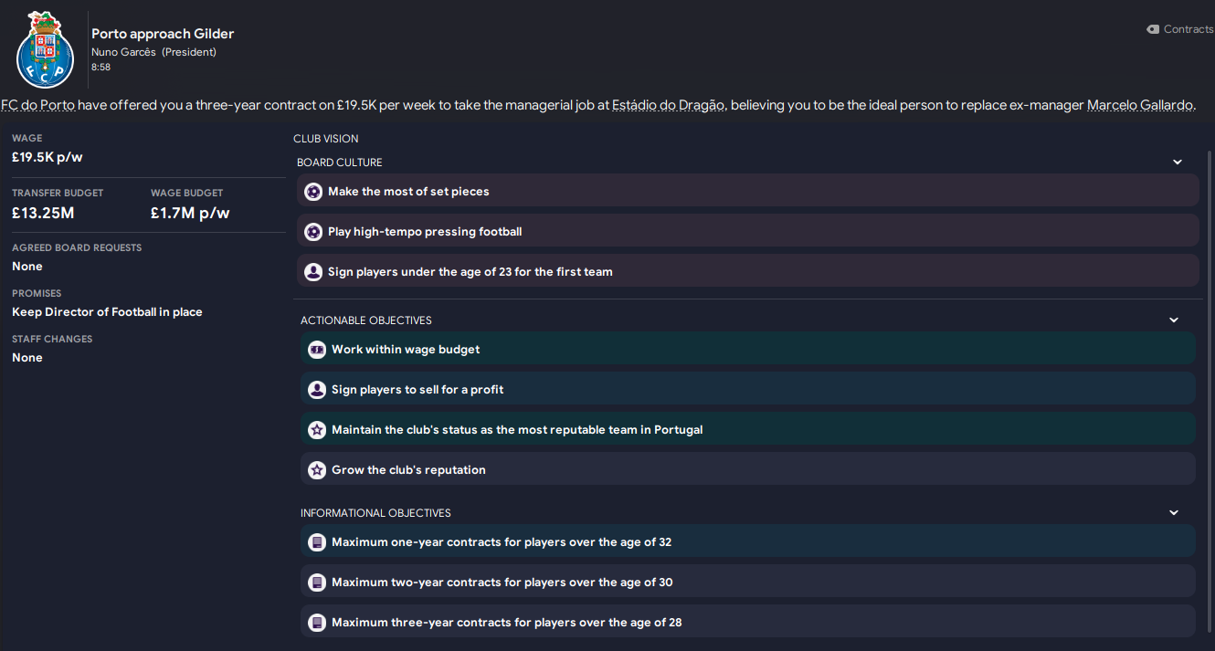 Normally, if I was playing this as a normal save, I would turn down this move. I’d rather be a growing fish in a big German pond than a big fish in a Portuguese pond. However, Porto are two years ahead of where I am at Paderborn. They’re already in the Champions League and the aim of this save is to win the Pentagon. As much as I’ve loved being Paderborn manager, winning the Champions League with them will take at least another 3-5 years. I’m gutted I have to make this decision but it’s a simple question of moving closer to the end game of winning the Pentagon. I probably won’t come back to this save file but just in case I do, I’ve deliberately saved it here so the Paderborn save can continue at some point.