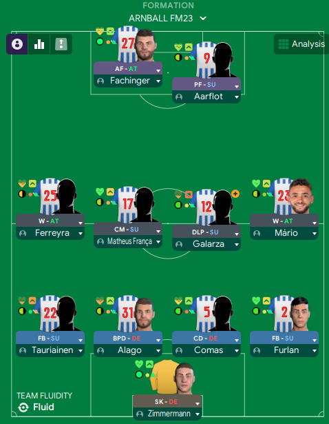 I really like all the bits of Champions League branding. Am I showing you this because we won again? Maybe. Three games. Three wins. 12 goals. 9 points should be enough for a play-off place at the very least. Fachinger is cooking in front of goal. I feel bad for the other strikers because they’re all scoring but he’s getting the plaudits. I looked at my ‘starting XI’ pic from the start of the season and we’ve basically stuck to that, but everyone is getting game time, and everyone is on the same page. I’ve not had players pick up on the style and formation this quickly before. It’s a joy, honestly.