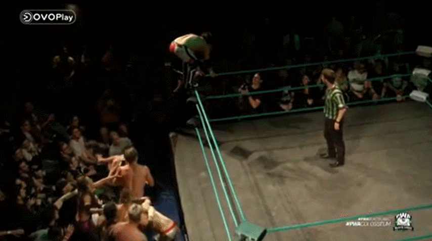 Video Control announces Jushin Liger is in PWA in December and you can see people freaking out. There are people in that building who’d written off any hope of ever seeing Liger live and that moment is special to every single one of them. It’s beautiful really.