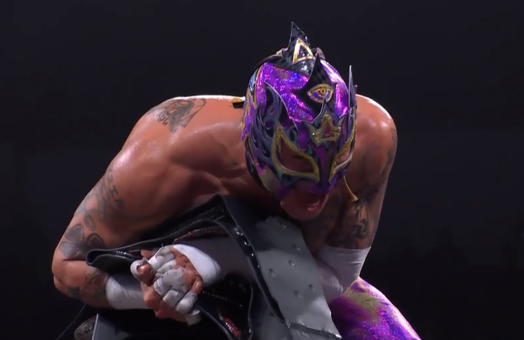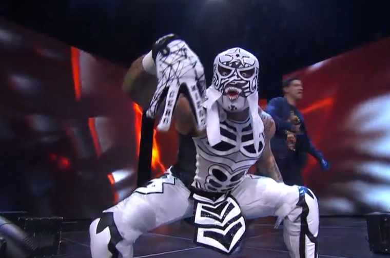 While they do a good job of recycling whoever is in the ring, there are constant long shots that reveal guys just lying around resting, or moving furniture to set up another spot. Aussie Open are particularly guilty of setting up a spot by moving ladders around for no reason. The match is absolute carnage. When it feels like it’s about to peak some more shit happens. The idea being that no team can effectively beat down everyone else enough to climb the ladders. Penta does the dumbest thing in the match; a Canadian Destroyer off the ladders through four tables. Fenix grabs the belts.