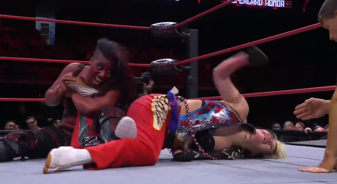 Athena gets the O-Face and nails it too and it’s not the finish because finishers cease to work Mania weekend. Shida looks concerned when its her turn to hit a finish. She’s holding back. Presumably over earlier issues. Athena has definitely gotten over her earlier jitters. She looks superb in the last few minutes on her offence and finishes with a second O-Face. Two orgasms? In the same day? My word.