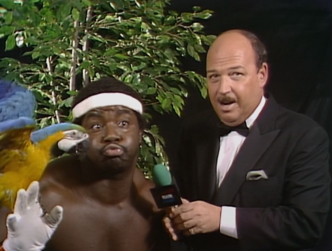 Piper cuts a rambling red-faced promo, stopping off to call Don Muraco “Fat Albert”, where he recalls dragging Orton out of a gutter after he was drunk on Thunderbird. It doesn’t even have an ending. Piper’s promos were something else. This is Piper getting his moment over Orton to confirm he was always the better man. I personally would have had this at WrestleMania, but they had Piper vs. Adonis there. Poor Bob gets squashed for free on TV. Orton collides with Jimmy Hart and Piper rolls him up to get the win. This is almost the end of Orton’s usefulness as a top guy for Vince. He was stuck in a tag at Mania and did a bunch of lower card stuff in 1987 before leaving.