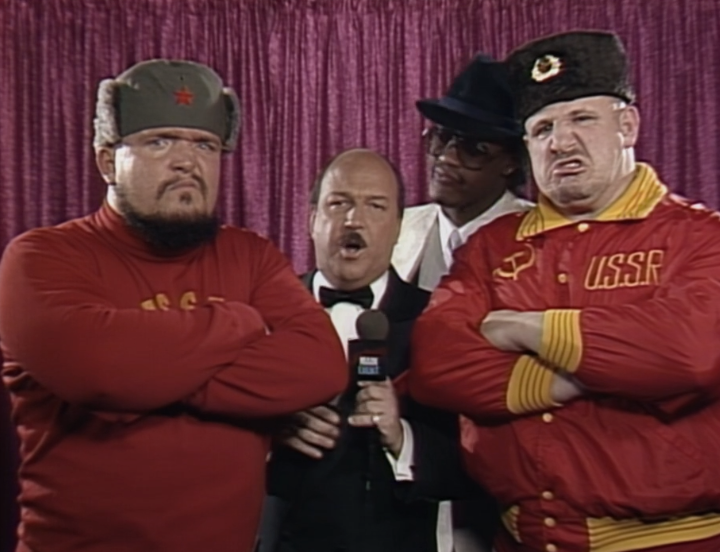 We get some backstage promos and Slick refers to Strike Force as preachers of “capitalist propaganda”. Slick looks like he was a capitalist, brother. Ventura tells us Gene Okerlund looks a bit like Nikita Khrushchev. He looks more like Steve Buscemi pretending to be Khrushchev.