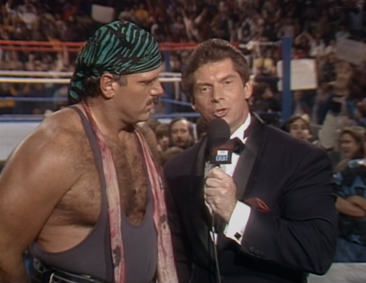 Fall two sees the Bolsheviks finally get something going, picking off Martel. They litter in a bunch of hope spots and it’s a really well put together match. It helps to cover the general incompetence of Boris Zhukov. Vince calls him “an idiot” on commentary. Bolsheviks miscue with Slick’s cane and Zhukov gets pinned again. 2-0. A surprisingly good little match. **½