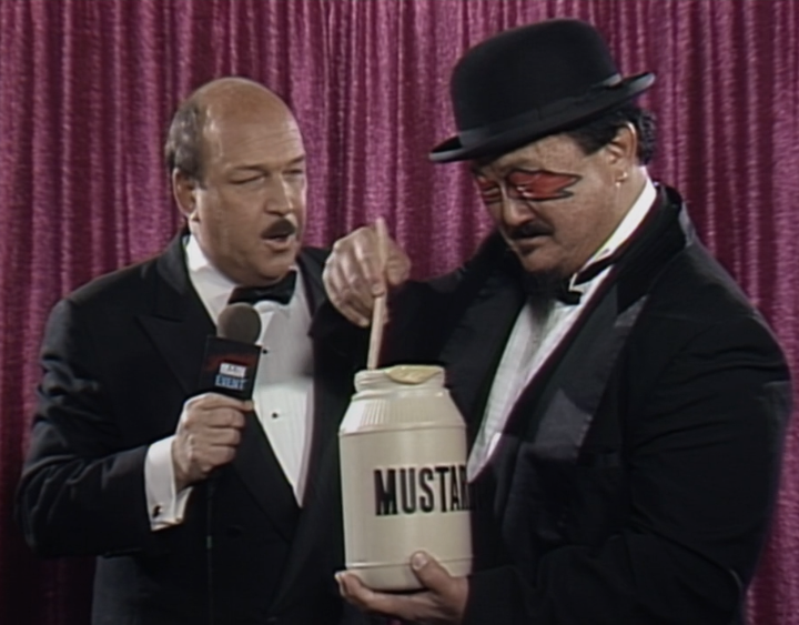 Sika’s best days are long behind him. This has been demonstrated frequently over the past couple of years. He retired in 1989. Although his biggest contribution to pro wrestling will be in the future; the career of his sons. Well, one of them anyway. I am, of course, referring to Rosey. Speaking of Rosey, this match would totally get the Three Minute Warning treatment in 2003. It’s all Sika rest holds until Jake’s punch-heavy comeback. We don’t even get a DDT as Sika misses in the corner and gets pinned. DOGSHIT. At least Fuji has the common decency to hop in there and eat the DDT. It doesn’t even knock his bowler hat off, to my amusement.