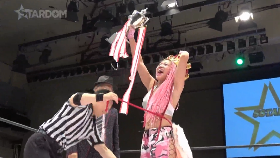 Both of them go after submissions, suggesting that both are carrying injuries after a lengthy tournament. They both get worked up, which is good to see in a tournament final. The pacing is frantic at times and the moves are impactful. The finish feels a bit flat with Konami just getting trapped in Hana’s submission and that’s it. I’m a bit disappointed they didn’t have a hotter finishing sequence but the match was solid.
