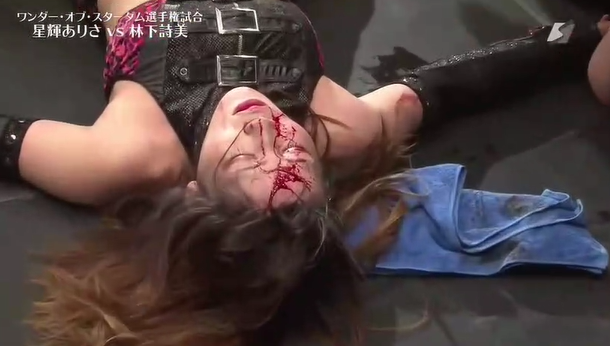 Utami seems fairly reluctant to take any of Arisa’s better spots and everything is very tentative as Utami has so much blood running into her eyes. They’re put in a tough spot and it takes a while to get the match back on track. Every time Arisa swings a kick I’m worried that Utami’s cut will get worse. It creates a genuine sense of dread when Arisa is throwing her usual crazy strikes. The knees terrify me. It gives Utami an out for losing too. No one can blame her given the blood loss. However the match isn’t a home run because the blood loss causes fuck ups. They try very hard to keep it together and, credit to Utami, the match doesn’t collapse on itself. The Brazilian Kick puts Utami out of her misery. They got through a tough spot here but it was a rough ride to get there. Points for overcoming adversity.