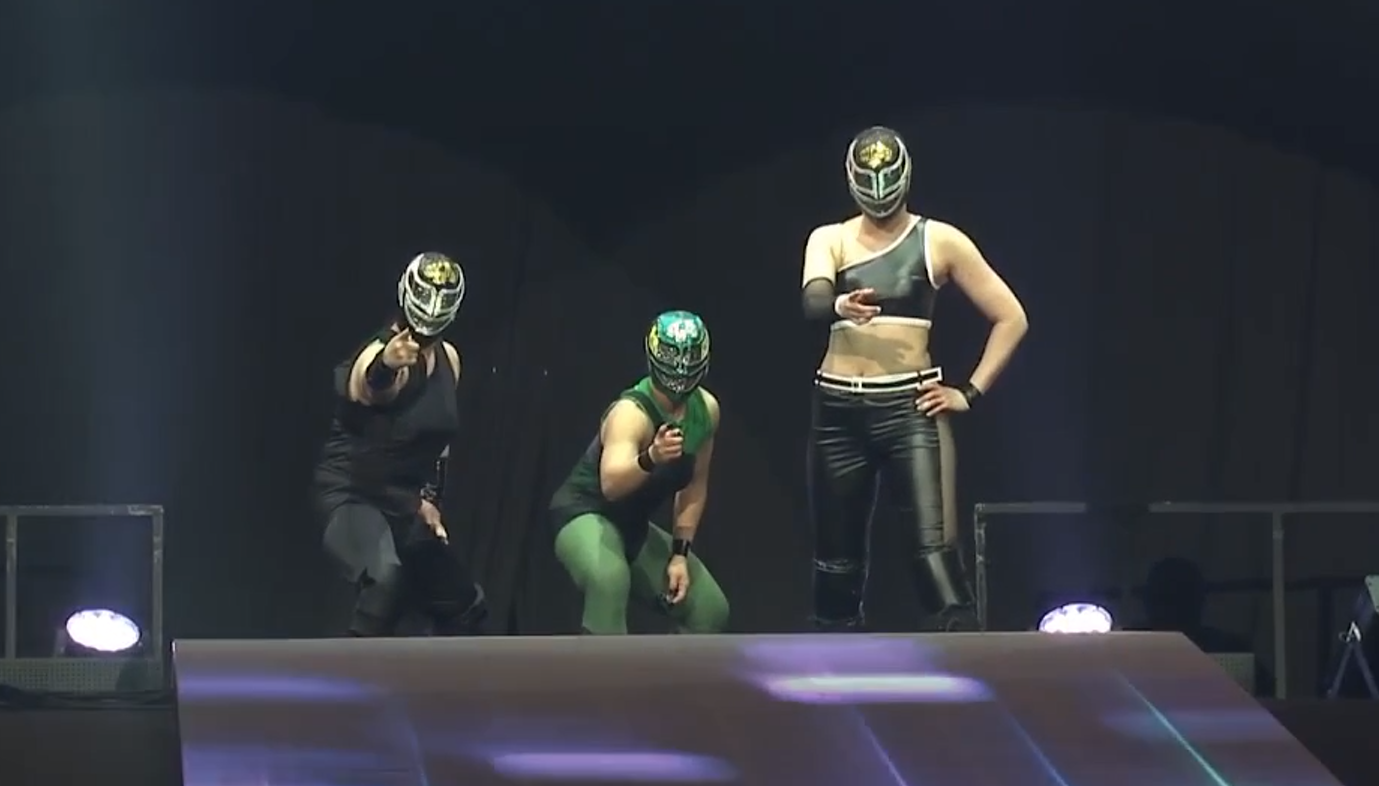 Mayu might be my favourite wrestler, currently. It’s her or Ishii. I’ve had the pleasure of watching them both live. Mayu did a dive off the bar in the ResGal. I was stood at the other end of it. Mone is doing an incredible job of building a new character away from Sasha Banks. She comes out here in Black Tiger-style gear to put over her love of Eddie Guerrero. You and me both, sister.