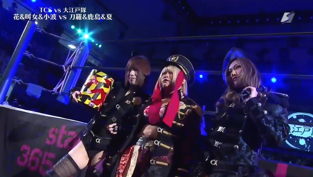 Oedo Tai (Natsu Sumire, Saki Kashima & Natsuko Tora) vs. Tokyo Cyber Squad (Hana Kimura, Jungle Kyona & Konami)