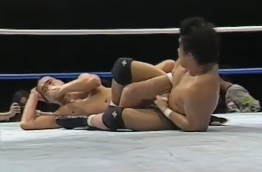 Hogan looks far less drunk than in the Tokyo Dome where he had a fun tag brawl with the Road Warriors. This is one of those Hogan performances where he’s watching all the shootstyle earlier and is all “I can do that, brother” and breaks out that one piece of chain wrestling he knows. You know the one; the little hammerlock reversal into drop down trip up he does. He also busts out this incredibly clumsy looking armbar. What is happening?