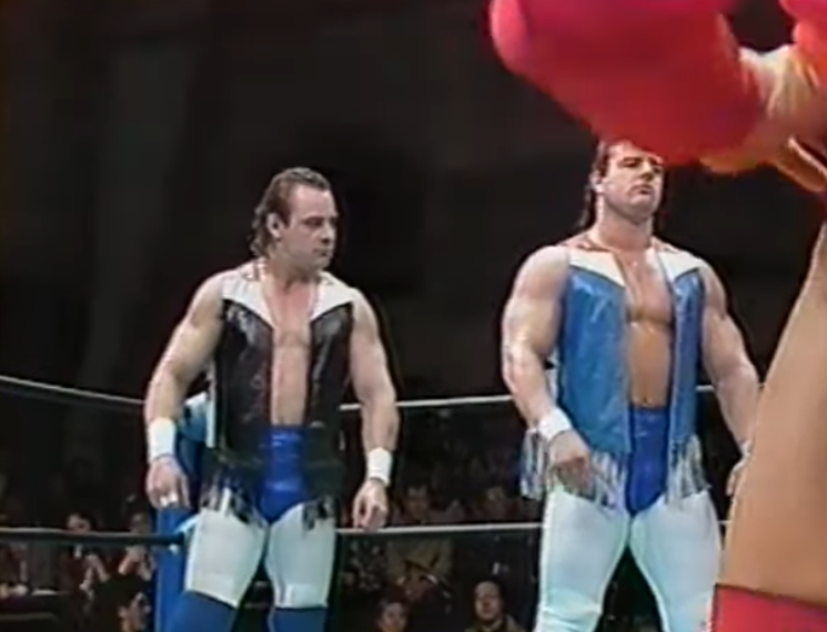 This is a 30:00 time limit draw and the only time two classic 80s tag teams ever met, on the neutral ground of WWA (Central States Wrestling out of Kansas). The WWA had existed since 1930, but the national expansion had crippled them. 1989 was the last year they were in business, and this is their last shot at staying around. The show was headlined by Hansen & Gordy vs. Tsuruta & Yatsu, for the AJPW tag belts. All Japan propped up this show with workers like Tenryu and Tiger Mask II.