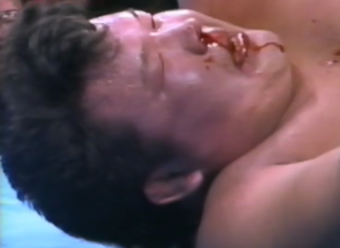 Back in this match the two blood soaked workers resort to submission attempts. Colon eventually getting the win with a Figure Four as Jason bleeds profusely. This wasn’t a good match but an interesting look at the blood-soaked Puerto Rico territory.