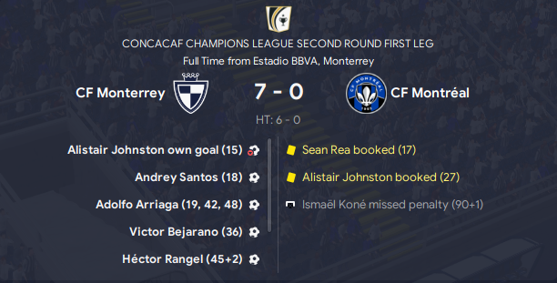 We are about 8 games into the Clausura and Arriaga now has 40 league goals this season. To put that into perspective; the guy with the second largest number of league goals has 18, the record for goals in a season is 26. If I get the right player in this formation, he scores bucket loads of goals. Arriaga is a perfect fit. Imagine if Martin Soler had stayed? He’d probably have 50+ by now. February swiftly rolls around and we face Montreal in the CONCACAF Champion’s League R16. Their best player is one Keesean Ferdinand, who has 50 caps for Canada and a massive afro. He plays at centre back and would not get anywhere near my team. My expectations are to roll this team over and stomp them into oblivion.