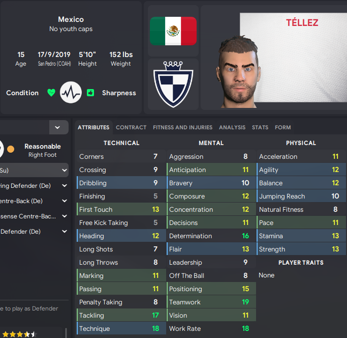 This guy is awesome. He’s 15 and could easily play for the first XI now. His physicals need a bit of work, but he’s got high potential too. The best player I’ve had in a youth intake prior to this is Zoltan Bognar, who currently plays for Benfica. An absolute legend of the save.