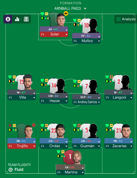 As a comparison to the starting XI at start of season. You can see that Zacarias, Trujillo and Santos are the only survivors. Green lines everywhere too. Hooray!