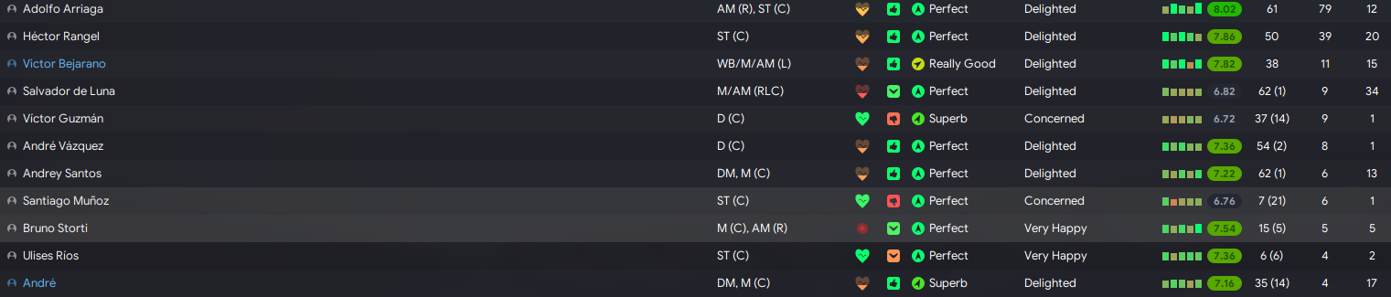 Reunited and it feels so good. I couldn’t sign George in England because of work permits and he’s crap at his job. No such issue in Mexico! Attram joins us too. On the transfers front; I needed a centre back. Welcome in Andre Vazquez from Club America for a fee of £12M. It’s a lot but he’s national team quality and way better than the other centre backs we have. Salvador de Luna comes in on a free from Man Utd. This was arranged before I got here. He does slot nicely into right midfield though. Victor Bejarano had a £7.5M release clause and was ideal for left midfield but he signed for Dortmund, the nerd. Dortmund however, decided to loan him out and guess where he’s gone? That’s right baby! Welcome in Victor Bejarano, whose nickname of “Scum Bastard” I have to remove. I’m resigned to Martin Soler joining a big European team so in comes Adolfo Arriaga to replace him from Club Leon. He’s a very good advanced forward and should pair up nicely with Rangel.