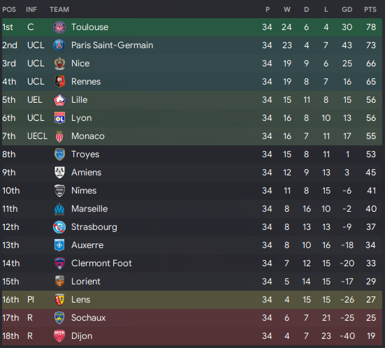 Elsewhere, the wildest title win of the save so far goes to Toulouse, who win their first ever Ligue 1.
