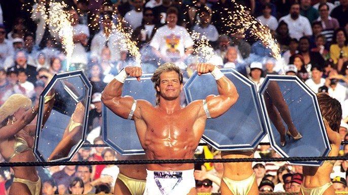 So, Vince, genius, debuted Luger as a man obsessed with his own appearance. Presumably because he hired him to be his Arnold Schwarzenegger in the World Bodybuilding Federation. Only for Luger to get injured riding his motorbike and miss the entire thing.