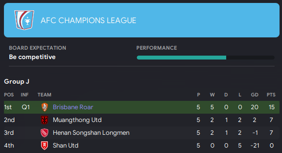 So, we’re out of the groups and into knock out football and who do we draw? Fucking Macarthur. The team that’s knocked us out of the last two FFA Westfield cups. Newcastle Jets also creep into the knock outs, so it makes Australia look like a powerhouse. Our old rivals FC Seoul are present again. They’re liable to be the biggest challenge from East Asia. South Korea have three teams in the draw, which should tell you how good their league is. I know Australia also has three but all those Korean teams are better than all the Aussie teams. I’m still debating whether I must go to Korea to win this damn thing. We’re better positioned than Terengganu, that’s for certain, but I’m still not convinced we have the quality to overcome the top Korean and Middle Eastern sides.