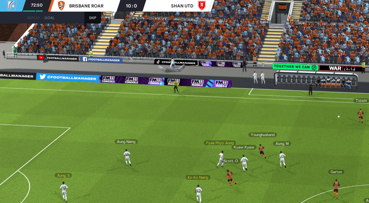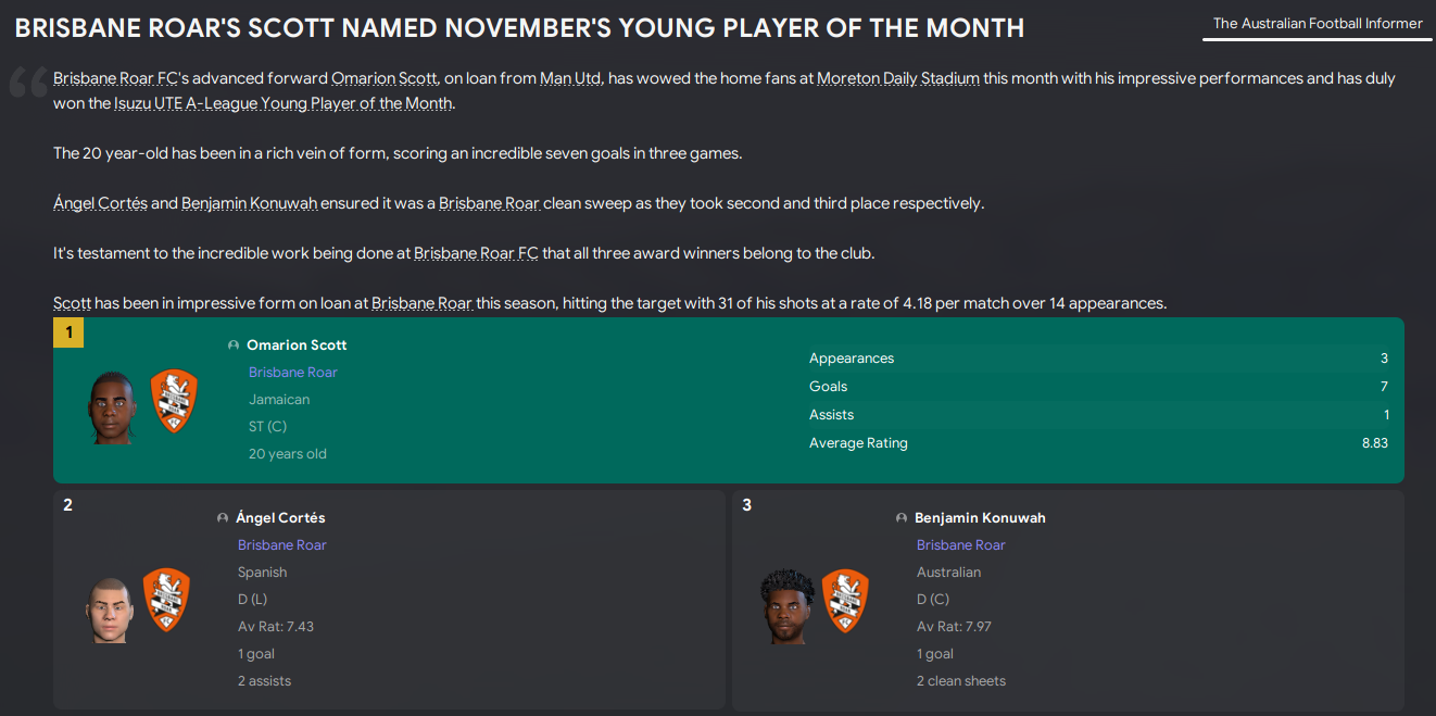 The young Roar team responds well and smash poor Shan Utd in the Champions League. I’ve discovered a few young talents in the youth team. Scott Mather is a young striker with a real eye for goal. Jeye Shaw is a winger whose delivery is excellent.