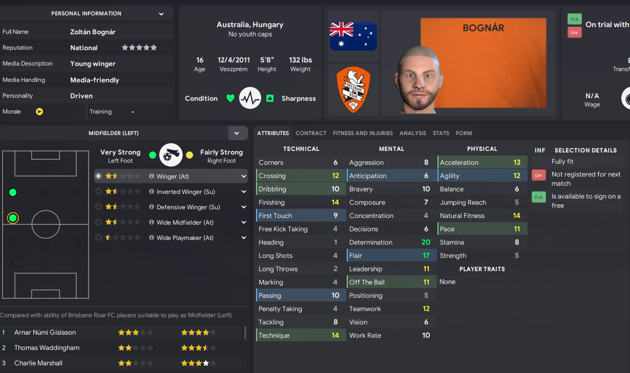 Speaking of youth; the intake is in and here’s the star; Zoltan Bognar! Flair 17! He’s going to dribble around every one of these Aussie frauds! Speaking of Aussie frauds, Dennis Adrenaline has taken up Australian citizenship, which means I have an open foreign player slot. Thanks, Dennis!