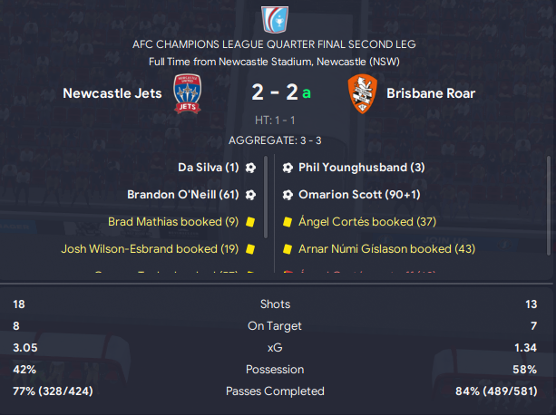 The fixture was won in the first leg. We actually played better in the second leg and they scored two late goals as we crumbled a bit under the pressure. We did enough in Australia though and we are CHAMPIONS OF ASIA. The Pentagon challenge is ONE FIFTH DONE!