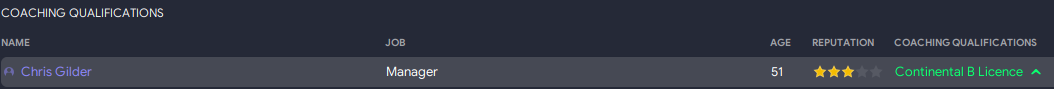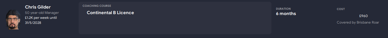 Meanwhile, in the coaching-sphere! Finally, we’ve got that Continental B. It took some badgering, but we’re there and please note the increase to *** on reputation. That puts my reputation above every club in the A League. They’re all **½ rep teams.
