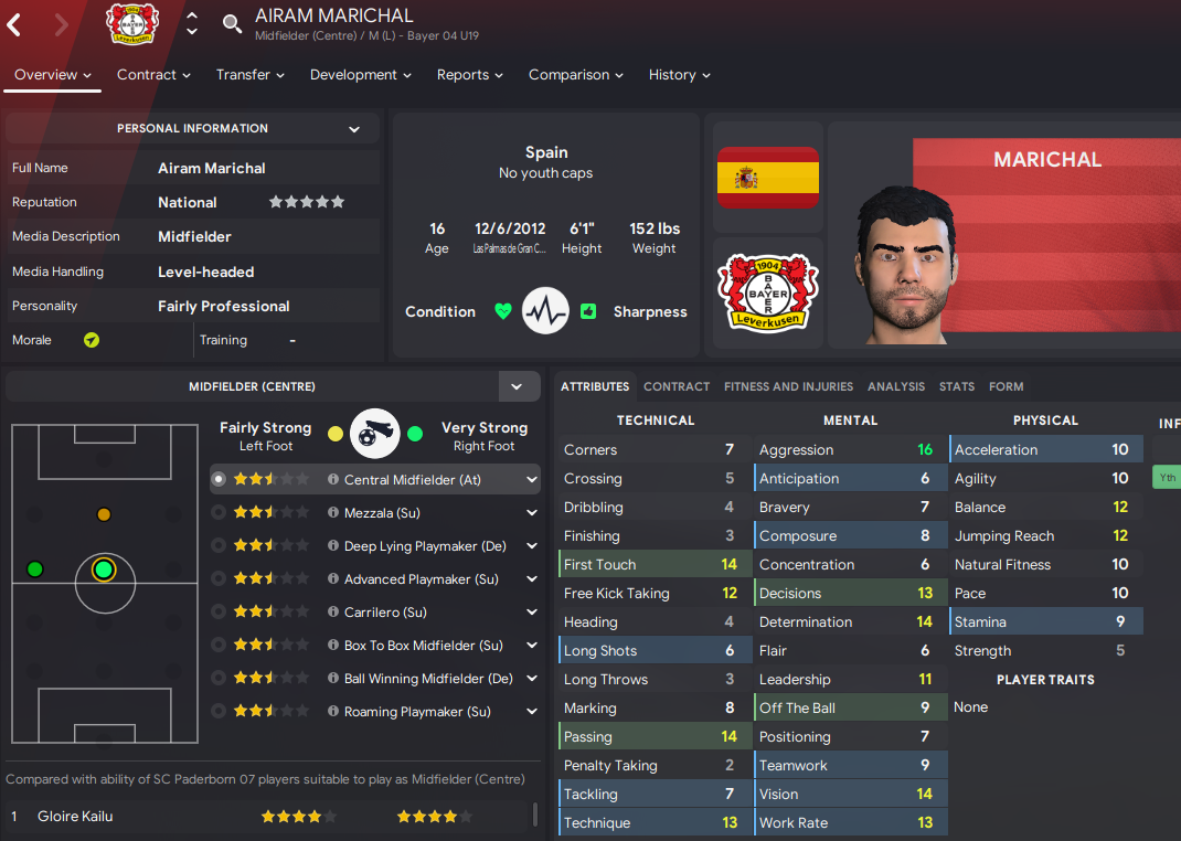 *I only found out after signing him that non-EU players aren’t allowed in II teams. That’s clearly racist. I doubt that would hold up in a court of law. He’s available for the U19s and drops a staggering 8.8 in his first game.