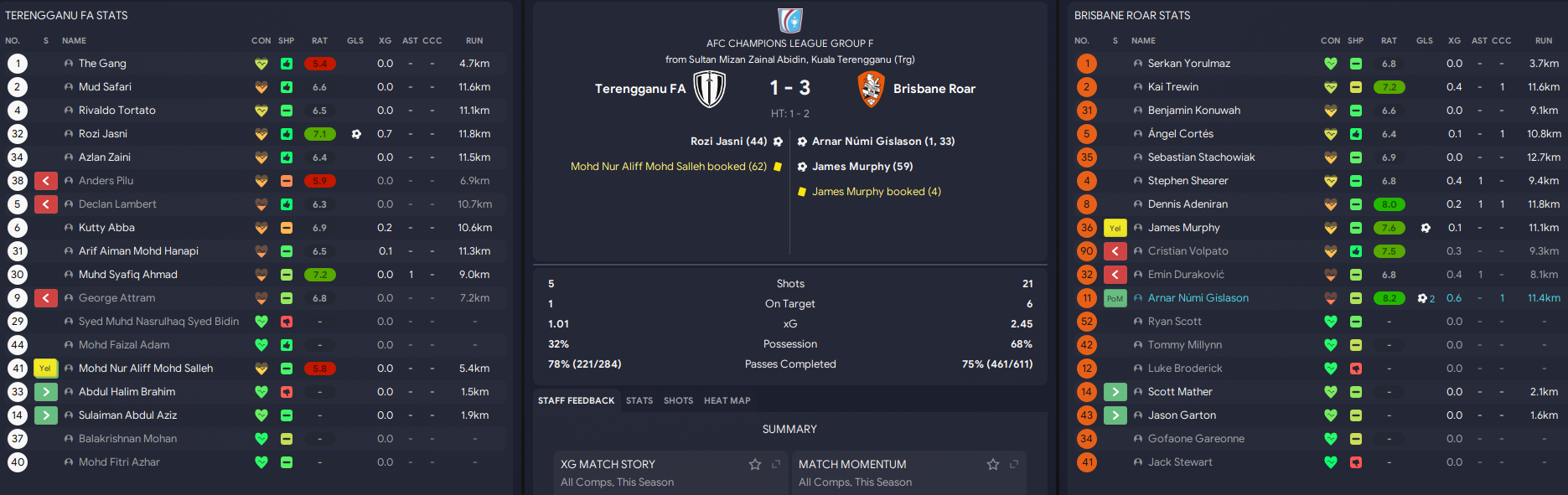WHAT? My two former teams drew each other in the Asian Champions League group stage! Here’s what would have happened if they’d ever clashed. Very surreal. The second game was less close with Brisbane Roar winning 5-0. The recency of my presence there keeping them stronger than Malaysia’s elite. The Roar didn’t even get out of the group and Terengganu finished dead last.