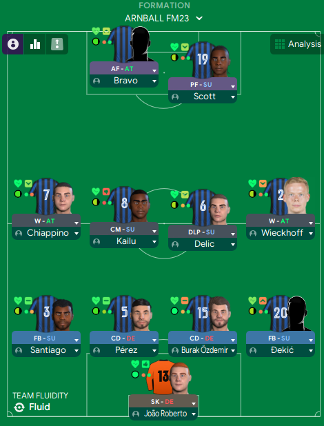 The only remaining faces are Wieckhoff on the right wing and Aleksa Delic in the DLP role. I’ve replaced everyone else. Delic does want to leave but he’s so good, I’d rather he didn’t. Justvan, the other centre midfielder when I started, has gone to Fortuna Dusseldorf for £5M. To show what a joke division this is; we win our opening game 7-0 despite Gaston Perez getting sent off after 37 minutes at 0-0*.