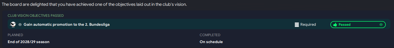 It’s a low bar, but we’ve cleared it and I only got us massively in debt to do it! In the process I have joined 25% of FM players who’ve got a team promoted. I can only assume the other 75% just started in a top division. This is my first crack at a promotion campaign, and it’s gone swimmingly.