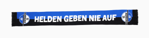 Or a scarf, so you can also proclaim that your heroes “never give up”. Clearly, the scarf did not witness our 2-1 defeat to Unterhaching. I legitimately considered getting both HUT and scarf, but the shipping charges were as much as the cost of the products.