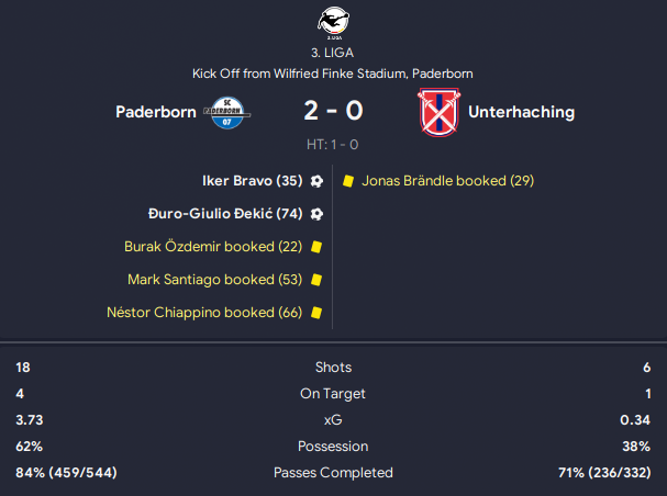 We get our revenge on Unterhaching in the process. Bravo’s strike is his 30TH for the club this season. He’s been a revelation up top. Dekic, signed as a reliable right back, has turned into club captain and leader.