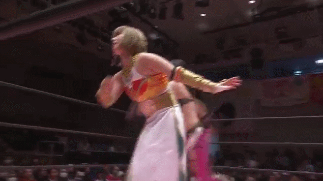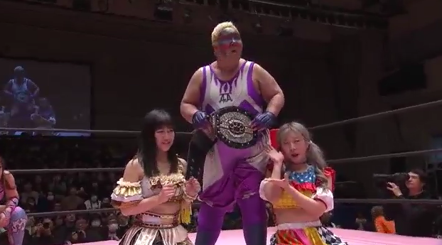 Yuki’s entrance music is Old McDonald Had a Farm, which is certainly a Choice. Saki is virtually a veteran now, which is just weird to think about. Yuki is basically the same wrestler, only younger. It’s like watching two broomsticks have a fight. Or that time the Undertaker wrestled the Undertaker…only obviously it’s a better match because Yuki Kamifuku is a way better wrestler than Brian Lee. That said, this match isn’t particularly good. Saki finishes with her abdominal stretch driver. This was fine.