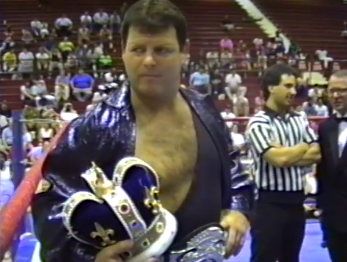 This is not for Lawler’s Memphis vanity belt, which he’s still claiming makes him the “unified world champion”. What fucking belts did you unify Jerry? You could probably claim the AWA one, seeing as he never lost it, but they’ve now ceased to be relevant. The level of workrate in this one can be demonstrated by the amount of times Lawler stops the match to cut a promo into the house mic.