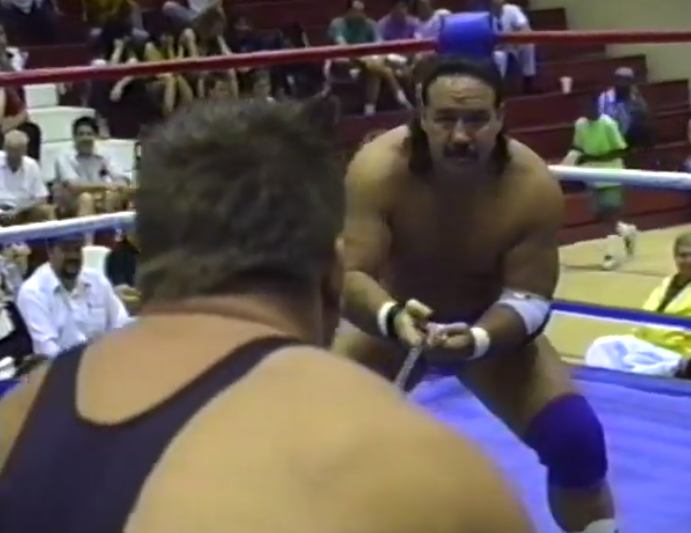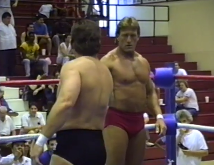 We’re JIP in middle of the show with these two old-timers working in front of a bored crowd who just want to see someone bleed. Both guys are in their ‘about to work for Herb Abrams’ phase. Orton gets the pin and only about a two minutes of this aired, which was more than enough.