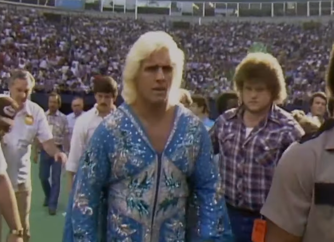 There’s a big difference in the reception for these two. Flair gets treated with indifference. Kerry is mobbed by fans. The high pitched pop when Kerry takes his robe off speaks volumes.
