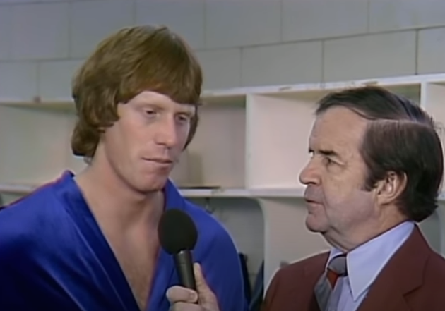 Fritz is undoubtedly putting pressure on him to measure up. Losing Kerry to a bad injury in 1986 was bad enough but having to carry a subpar Mike von Erich was just unacceptable. Mike stumbles and fumbles all over his promo. It’s so sad to watch.