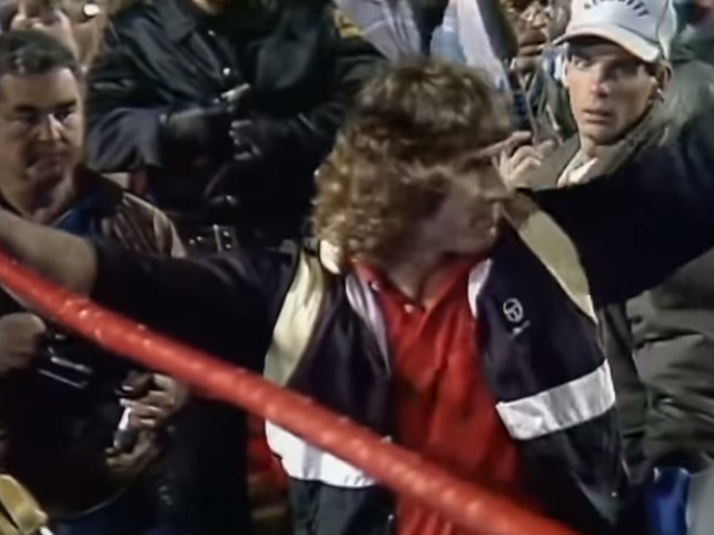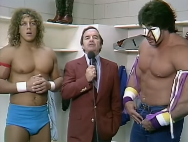 Oh hey, look who it is? Not Steve Simpson but rather the facepaint and tassel lovin’ son of a gun on the right. With normal hair, it’s hard to recognise him but the elements are coming together on this Ultimate Warrior. The weirdest part of this is him just talking normally. He doesn’t have that X factor that he would later in his life.