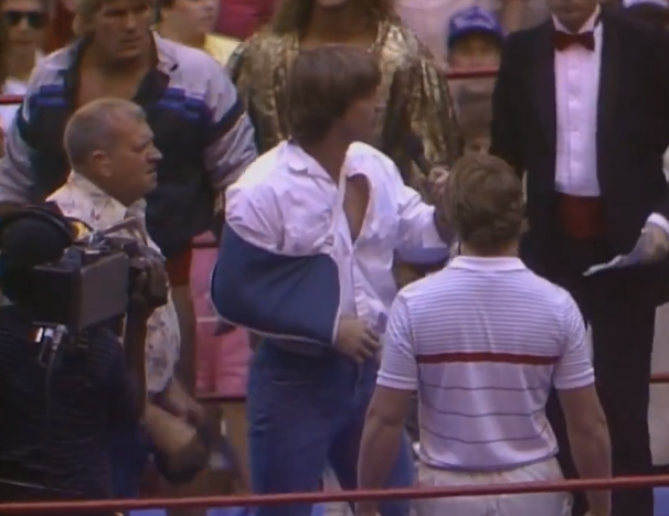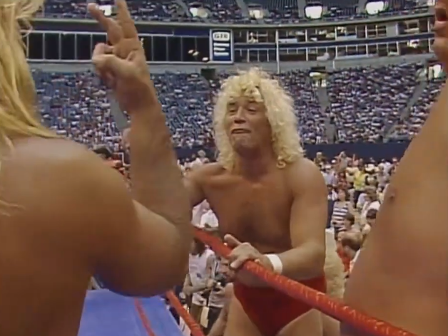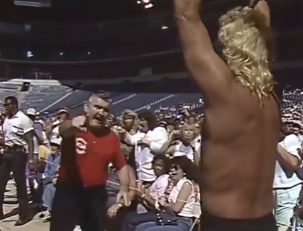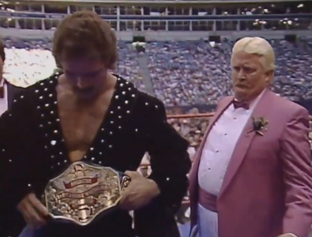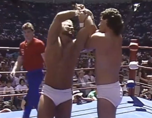We’re in Irving, Texas at Texas Stadium. 24,121 in attendance. Host is Bill Mercer. This is pretty much the end of World Class as a major entity. The promotion benefitted, in horrific fashion, from the untimely death of David Von Erich. If that was an isolated incident, who knows how long the Von Erich family would have been a hit in Dallas. With Kevin and Kerry, they had two world class guys who weren’t going anywhere because their dad was in charge.
