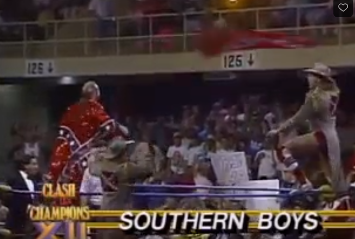 BADSTREET, ATLANTA, GA! The Freebirds have Buddy Roberts in their corner. I legitimately didn’t know he came back. Apparently, it was one night only. BOTH teams have gear with the rebel flag on it. It’s amazing how attached some people are to a flag that existed for two years during a conflict that took place over a hundred years ago. I will never understand it.