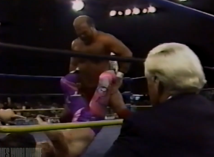 Video Control gives us some clips from previous Flair-Eaton clashes ahead of their match at Clash 15. Then some footage of Muta as he’s wrestling Lex Luger for the #1 contender’s spot. Knowing where this is going, I feel like a car crash is incoming. I feel weirdly nervous about it.