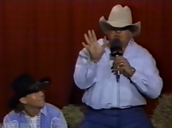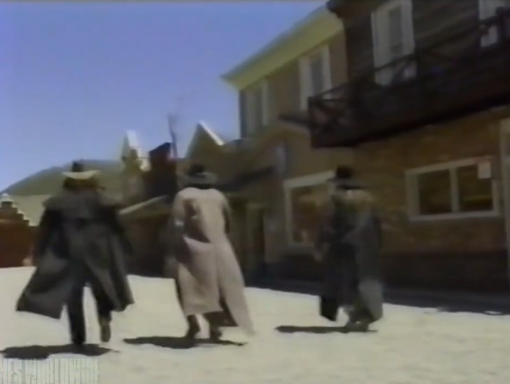 Video Control gives us a look at the Desperado’s, three men on horseback riding into a Ghost Town. Oh, you never heard of the Desperado’s? It’s a shame the gimmick never worked because they made some great footage here. Three mysterious cowboy drifters. They could have been pretty cool. It’s Dutch Mantell, Black Bart and Randy Colley aka Moondog Rex. WCW turned the concept into comedy with the bumbling trio looking for Stan Hansen, only for Hansen to refuse to be involved in the whole thing and fuck off back to Japan.