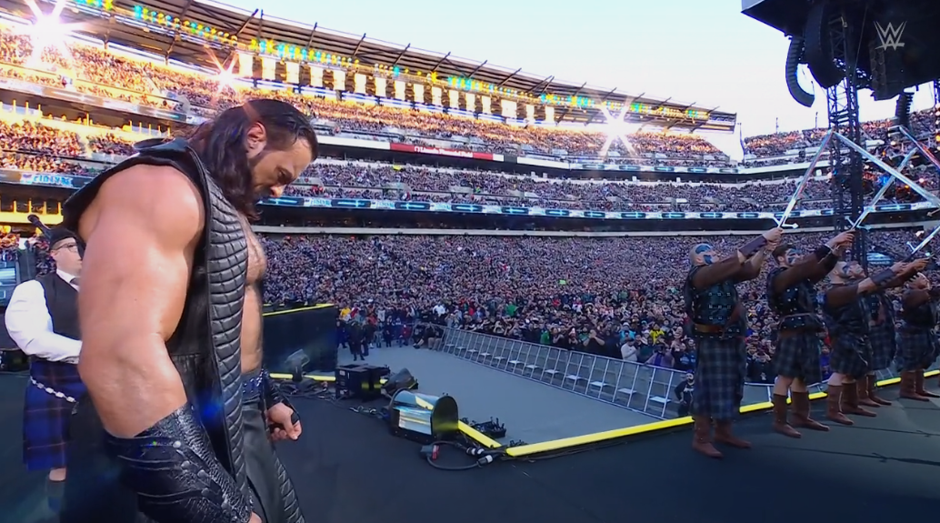 We’re at Lincoln Financial Field in Philly for N2 of Wrestlemania. N1 disappointed. Sure, it was great to see Sami Zayn hit a turnbuckle brainbuster and the Rhea match was ok but otherwise, it fell short of expectations. Tonight, WWE have the chance to apologise for those shortcomings. I appreciate that you can’t have rice pudding two nights in a row, but we had no rice pudding yesterday. Hosts are Michael Cole, Pat McAfee and Corey Graves. Oh, and CM Punk for the opener.